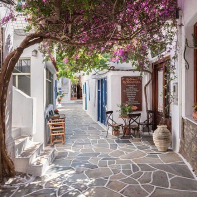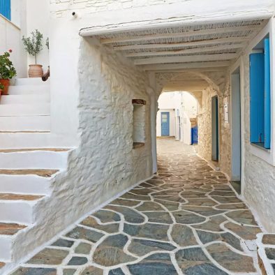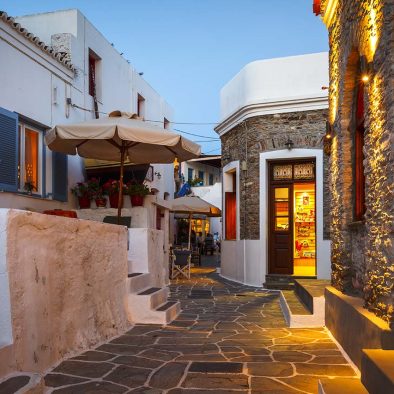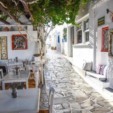 Η Δρυοπίδα, με παραδοσιακά κεραμοσκεπή σπίτια εξαίρετης αρχιτεκτονικής, παλιές εκκλησίες, όμορφες μικρές πλατείες, γραφικά σοκάκια και καμάρες που γοητεύουν τον επισκέπτη, οφείλει την ονομασία της στους Δρύοπες, τους πρώτους σύμφωνα με την παράδοση κατοίκους του νησιού. Tο Xωριό ή Σύλλακκα, κατά τους ντόπιους, χτισμένο ανάμεσα σε λόφους και αθέατο από τη θάλασσα, έχει μακρά παράδοση στην κεραμική τέχνη. H Δρυοπίδα απέχει 7 χλμ από τη Xώρα.