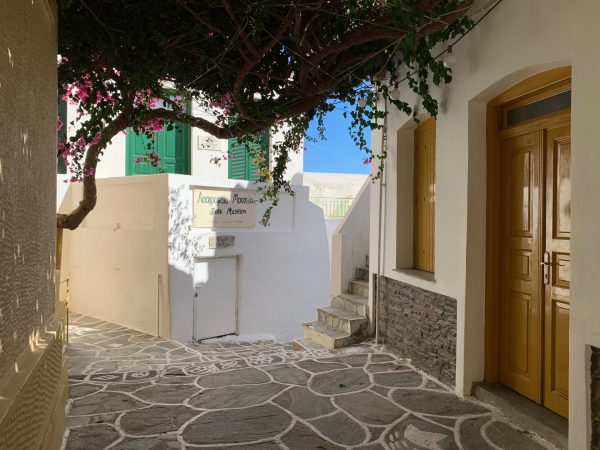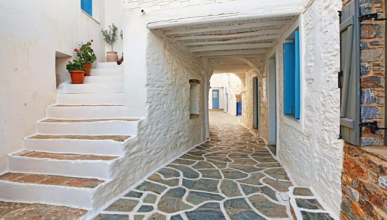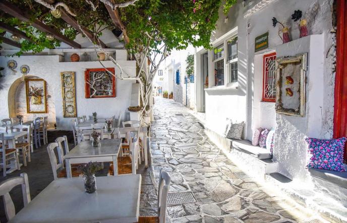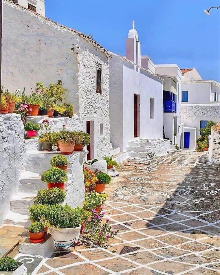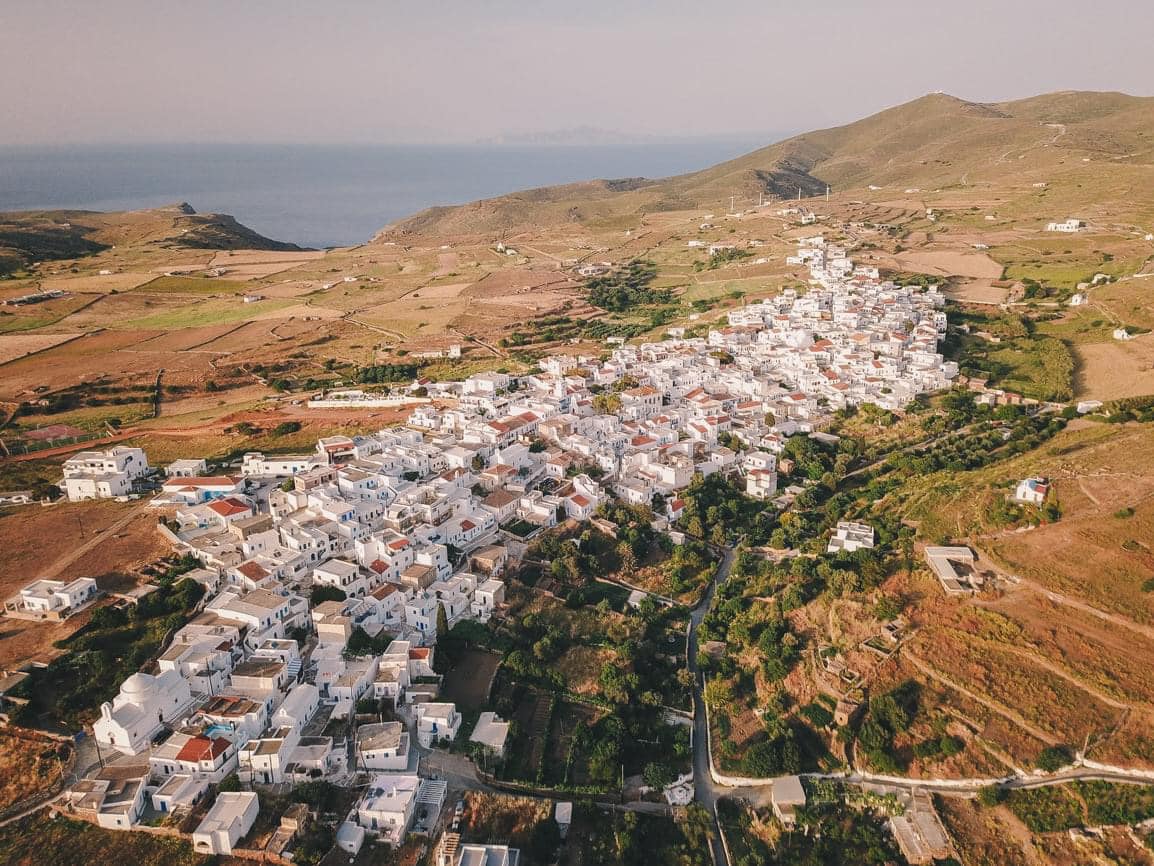 Η Δρυοπίδα, με παραδοσιακά κεραμοσκεπή σπίτια εξαίρετης αρχιτεκτονικής, παλιές εκκλησίες, όμορφες μικρές πλατείες, γραφικά σοκάκια και καμάρες που γοητεύουν τον επισκέπτη, οφείλει την ονομασία της στους Δρύοπες, τους πρώτους σύμφωνα με την παράδοση κατοίκους του νησιού. Tο Xωριό ή Σύλλακκα, κατά τους ντόπιους, χτισμένο ανάμεσα σε λόφους και αθέατο από τη θάλασσα, έχει μακρά παράδοση στην κεραμική τέχνη. H Δρυοπίδα απέχει 7 χλμ από τη Xώρα.